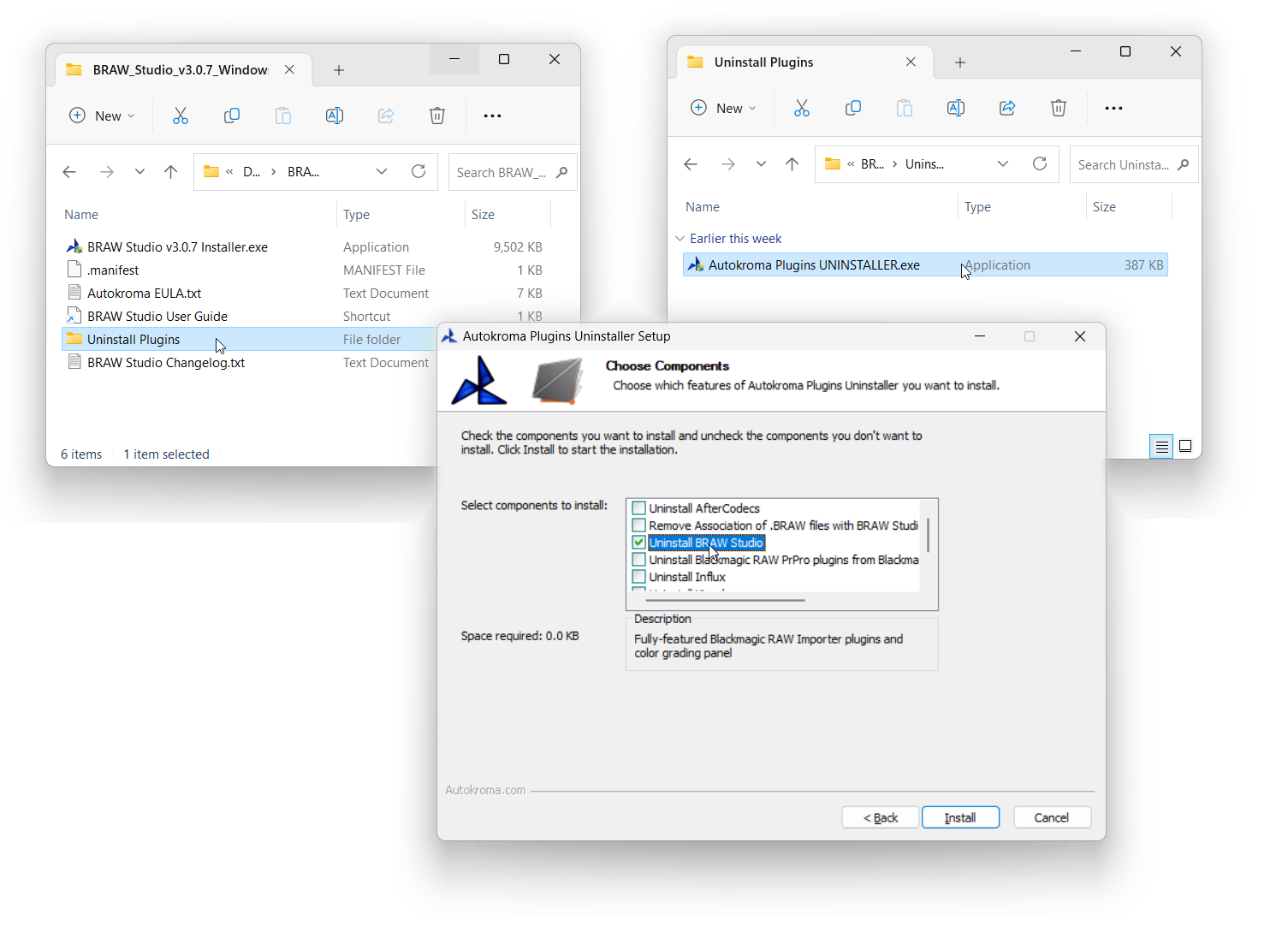 - New Uninstall checkbox in the installers to easily uninstall BRAW Studio plugins and panels