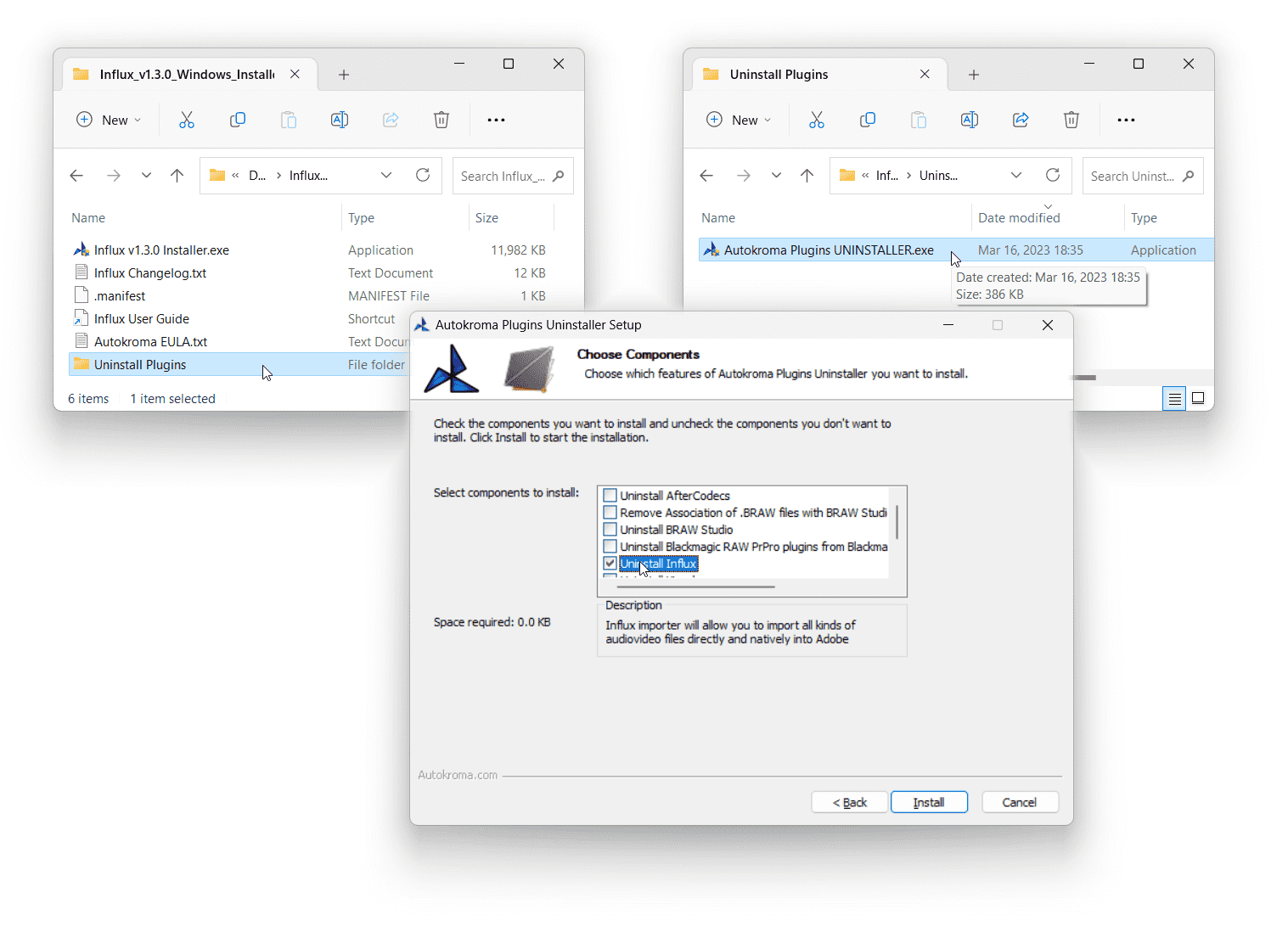- You can run our Install and Uninstaller .exe in command line like this : 'start "Autokroma" /wait /b "InstallerOrUninstaller.exe" /S', for our uninstaller you can pass an argument to specify which product to uninstall like this : '-Uninstall_Influx'. Do not forget to run your Terminal as Administrator, otherwise you will need user interaction to confirm the Administrator rights prompt. This also works using Microsoft SCCM (System Center Configuration Manager) to automate deployment